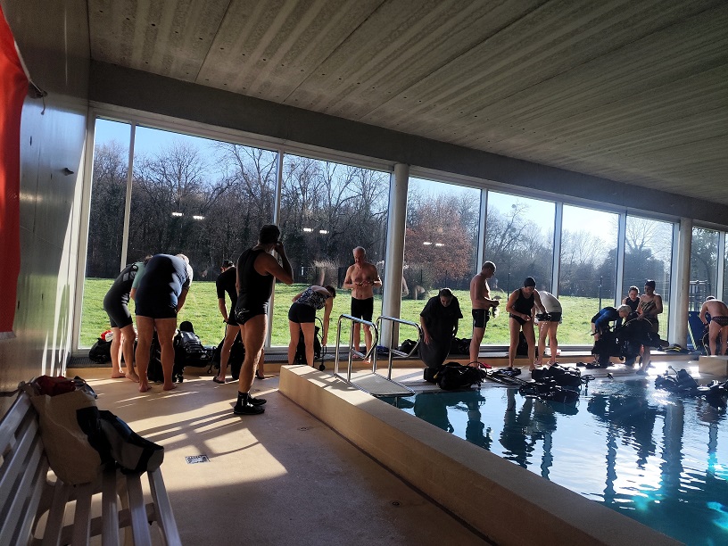 LE TUBE CONFORTABLE DE L’HIVER : Le 8 Février, 16 plongeurs et plongeuses des HGCR se sont retrouvés à la fosse de Marne et Gondoire pour deux plongées à 20m dans une eau à 30 degrés.